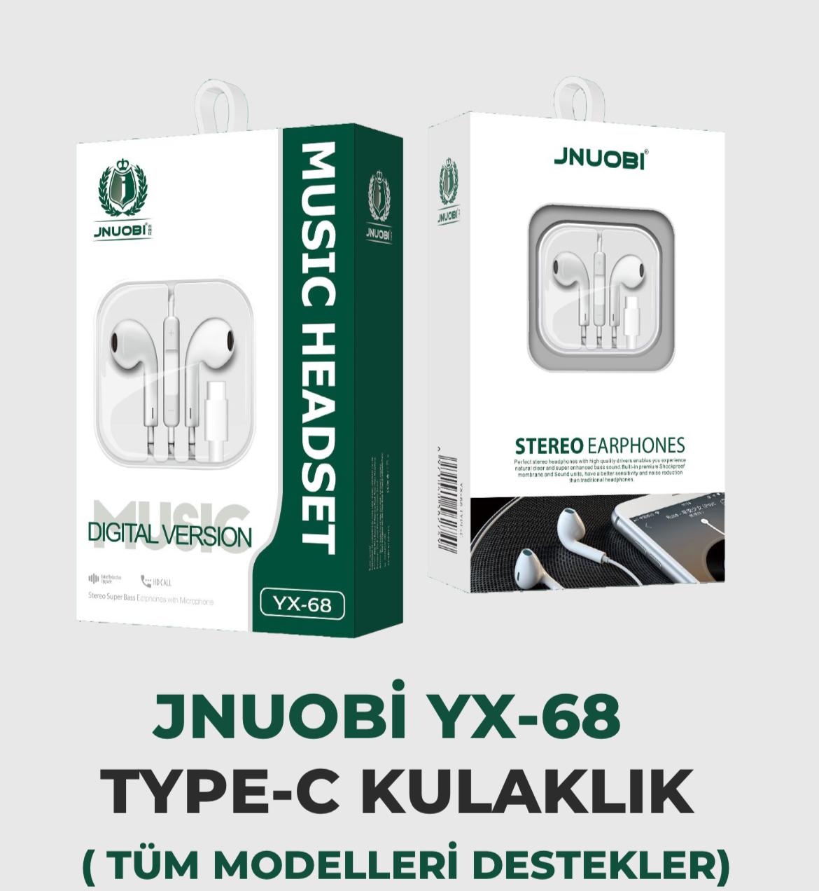 Jnuobi Type C Girişli Streo Kablolu Kulaklık Beyaz Type-C Kulaklık YX-68